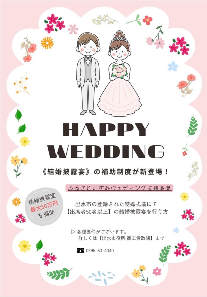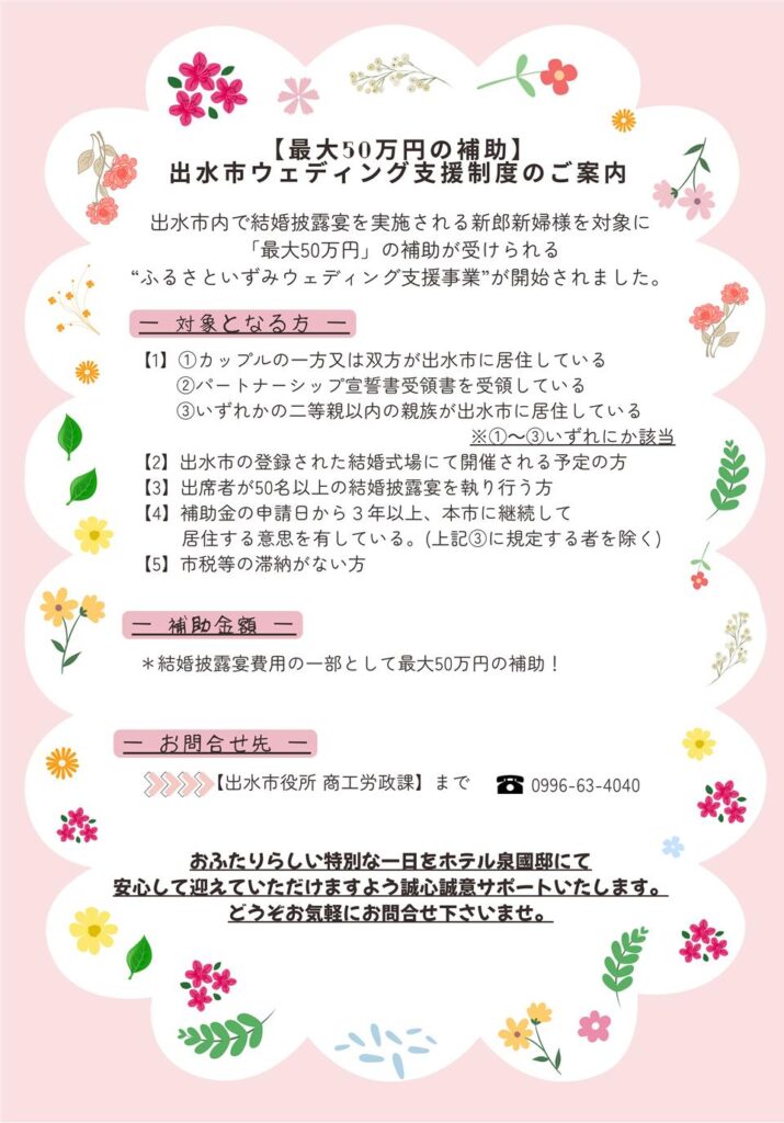 出水市ウェディング支援制度がご利用になれます!