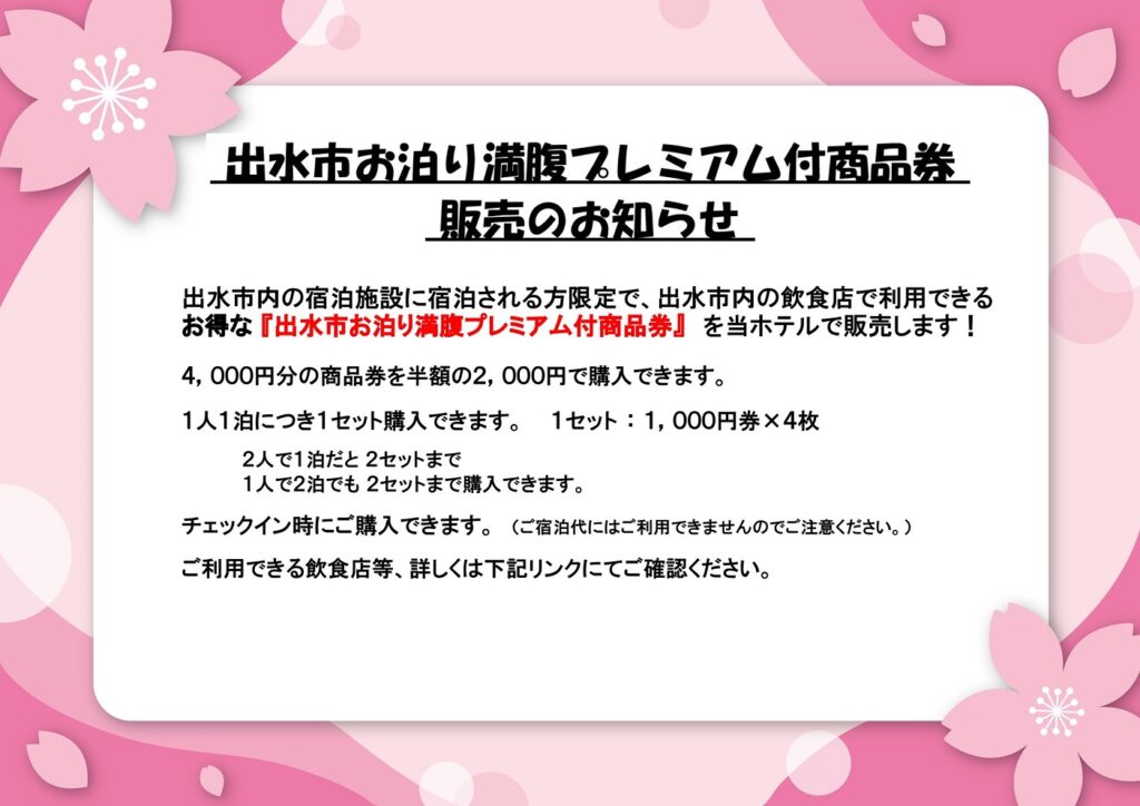 出水市お泊り満腹プレミアム付商品券 販売のお知らせ